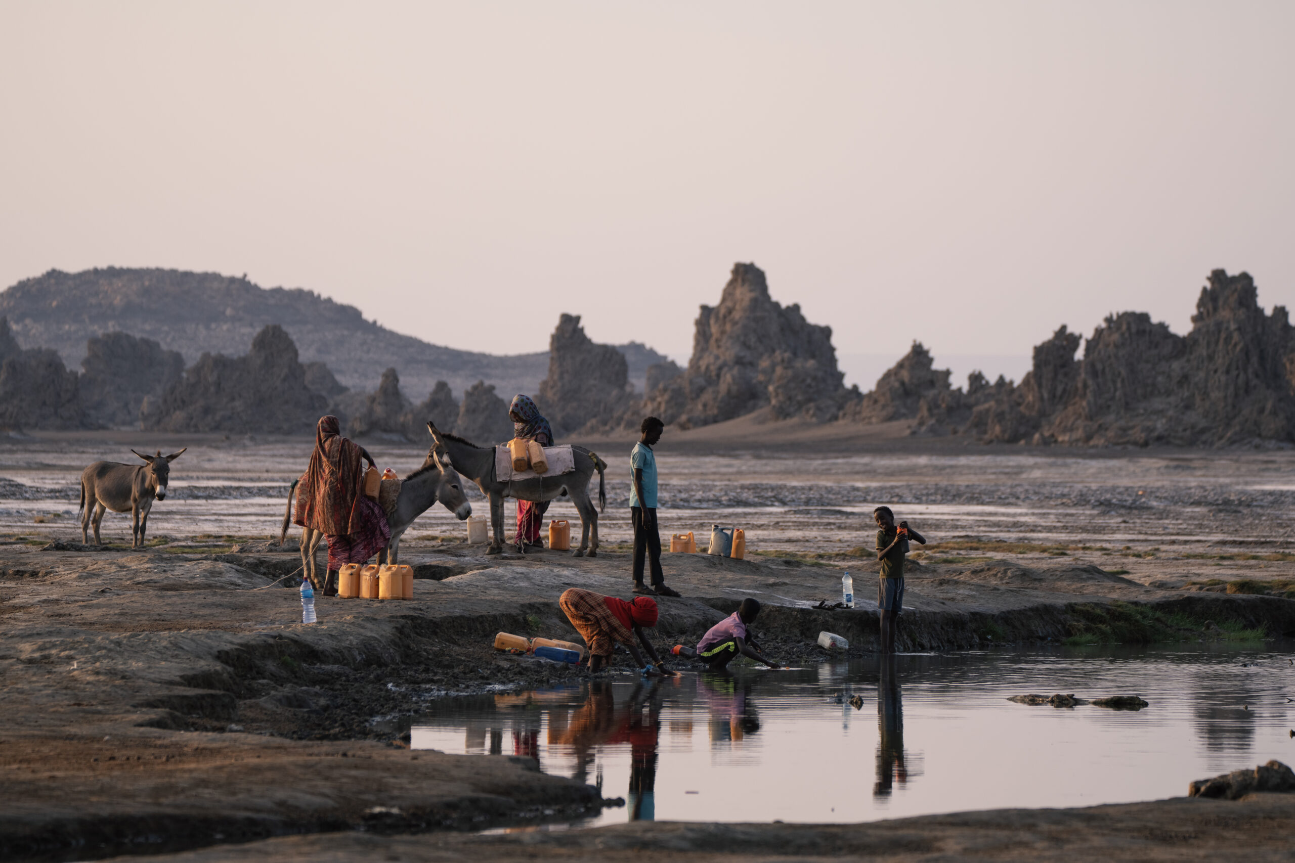 - LAKE ASSAL – another salt lake, the third lowest point on earth, after Dead Sea and the Sea of Galilee. It was supposed to be really blue/ turquoise in colour, but we didn`t find it like that. Not sure if it was due to the high wind or it was something else. It is Africa’s lowest point (155m below sea level), known for its surreal white salt flats, dormant volcanoes, and intense heat, with water saltier than the Dead Sea, making it a major salt-producing site and a unique natural wonder in the Afar Triangle. What dissapointed us was the Chinese factory producing sodium bromide and we are having serious question marks about the environmental impact and the fact that they are dumping things in the lake.